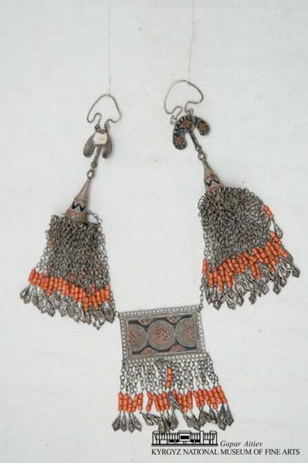 Две конусовидные подвески с цепочками и нагрудной бляшкой.