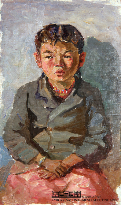 Этюд, сделанный в год начала войны, но войны еще нет. Можно сказать точно – этюд был написан до 22 июня 1941 года. Этот день девочка будет помнит всю жизнь. А пока – мирное время. Сидит девочка возле наружной стены дома; смотрит печально, совсем по-взрослому. У нее большая голова и маленькие ручки – это от нехватки витаминов. Сзади косички, но они ей уже не идут; и двубортный мальчиковый пиджак стал ей маловат – еле застегнулась пуговица на груди. Солнечный день, тепло, но не жарко, скорее всего, весна, может быть, май, а возможно – 9-ое! Принарядилась: на руке браслет, на шее бусы. Смотрит в будущее с приглушенной надеждой, мечтает… А мы знаем, что ближайшее будущее не сулит ей ничего хорошего – голод и тяжелый труд. Да! Будет радость Победы в Великой Отечественной Войне! Впереди – большая жизнь! Будет много счастья и света! Все это будет! Пусть сбудутся ее мечты! … А тогда – художник своим талантом в маленьком быстром этюде смогла запечатлеть Время! Образ Времени! Ясный весенний день и вдруг повзрослевшую девочку.